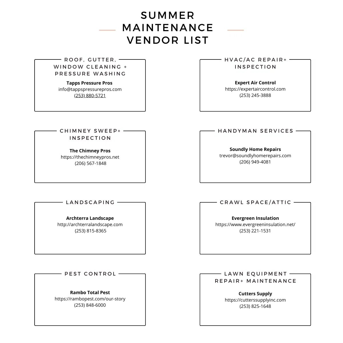 Summer Maintenance Vendor List